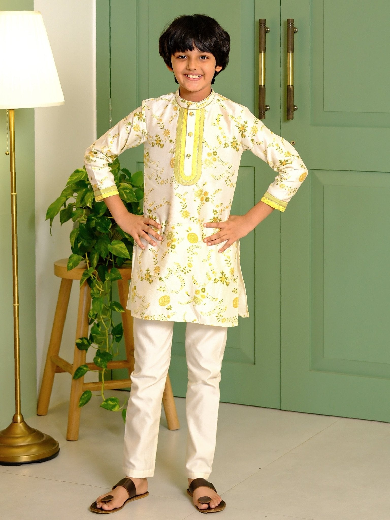 Floral printed kurta & pyjama set accentuated with contrast fabric trims