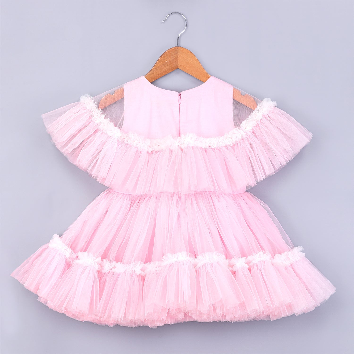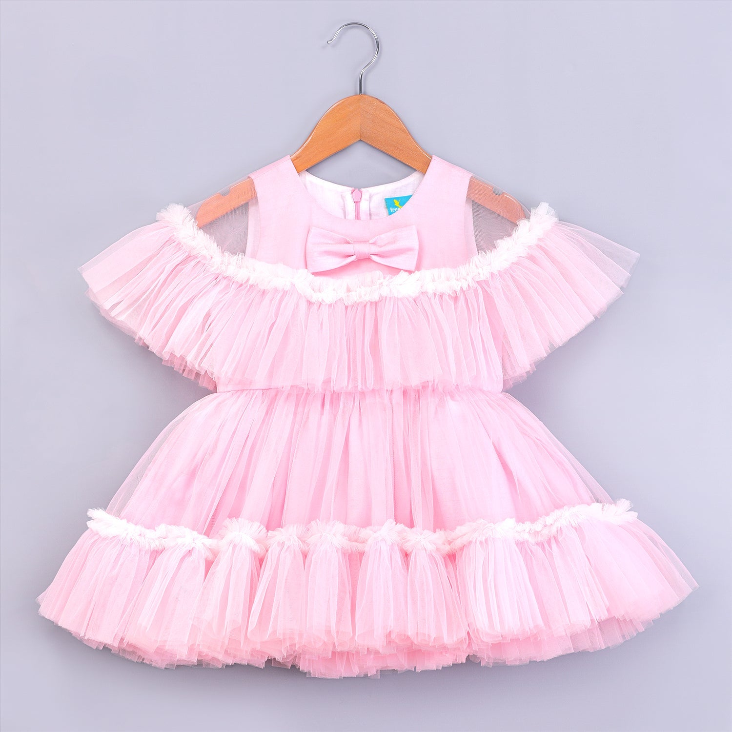 Magical pink dress highlighted with beautiful ruffled trims cape & bow